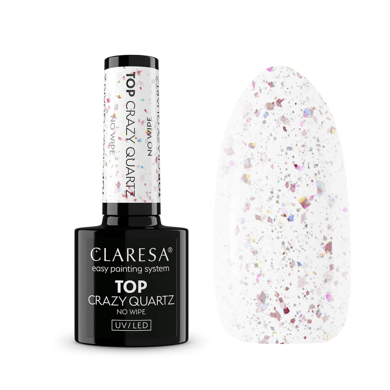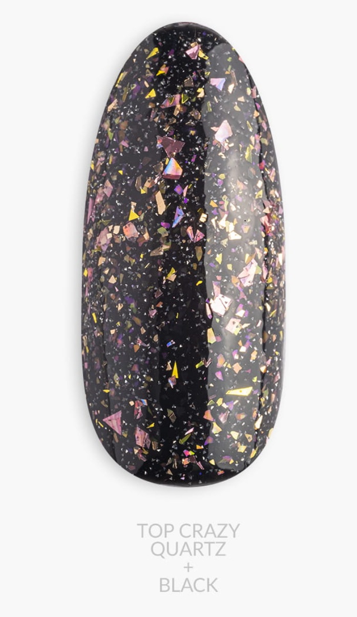 Ajoutez une touche d’art et de luxe à votre manucure avec TOP NO WIPE CRAZY QUARTZ, un top coat transparent enrichi de fragments de feuille rose et or. Son effet scintillant multidimensionnel transforme instantanément un look classique en un style spectaculaire, raffiné et unique.